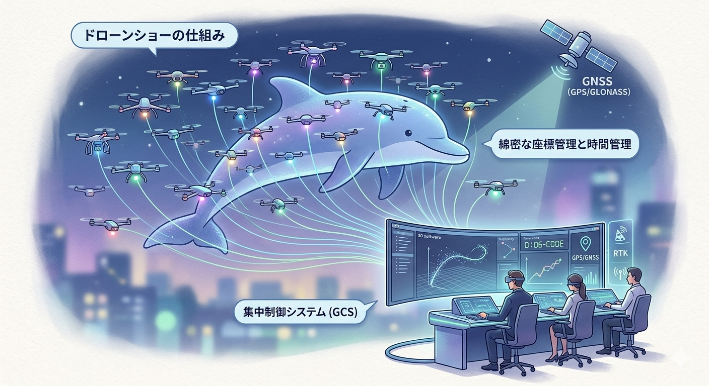 🛫 ドローンショーの仕組み:なぜぶつからず夜空に絵が描けるのか?